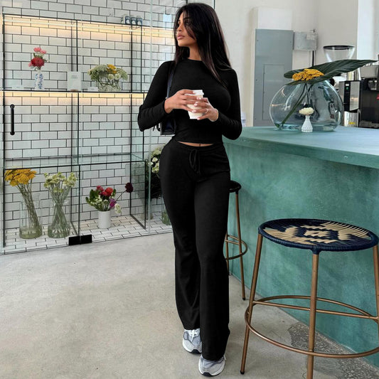 Daily Women's Streetwear Solid Color Spandex Polyester Rib Fabrics Pants Sets Pants Sets