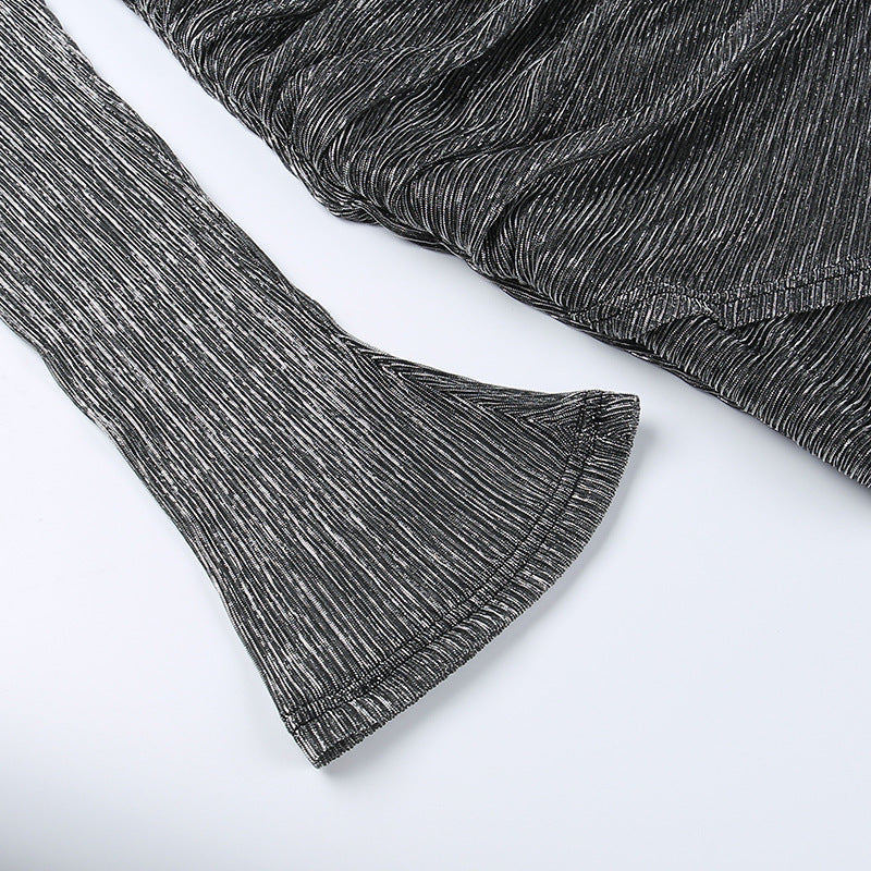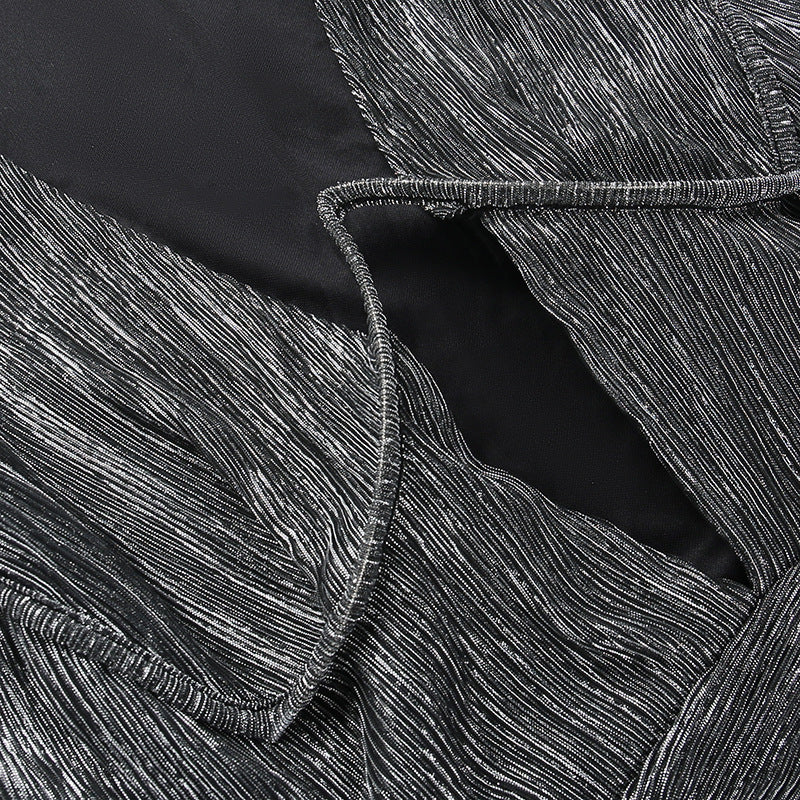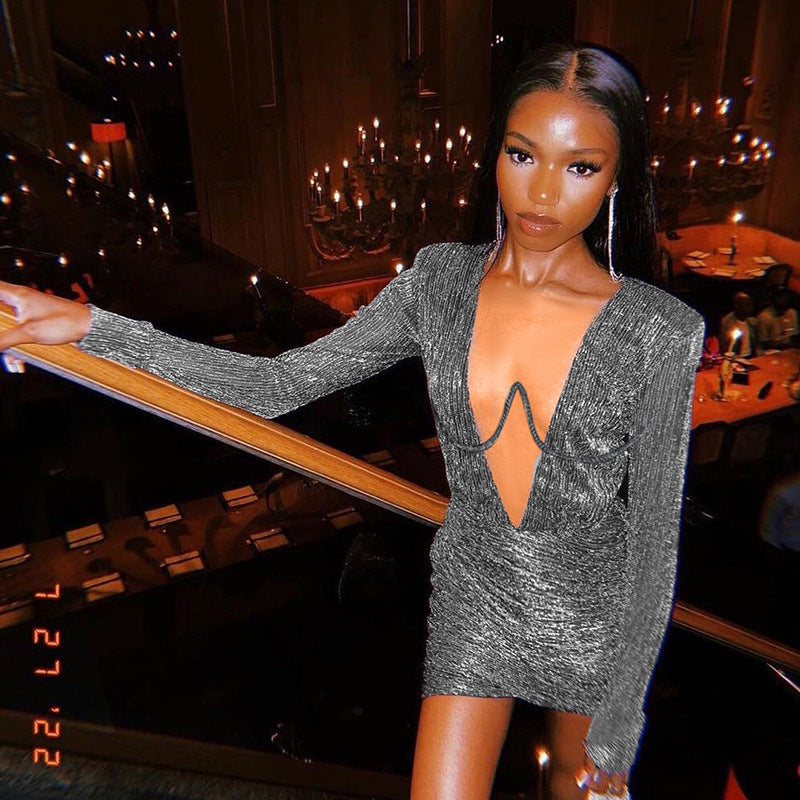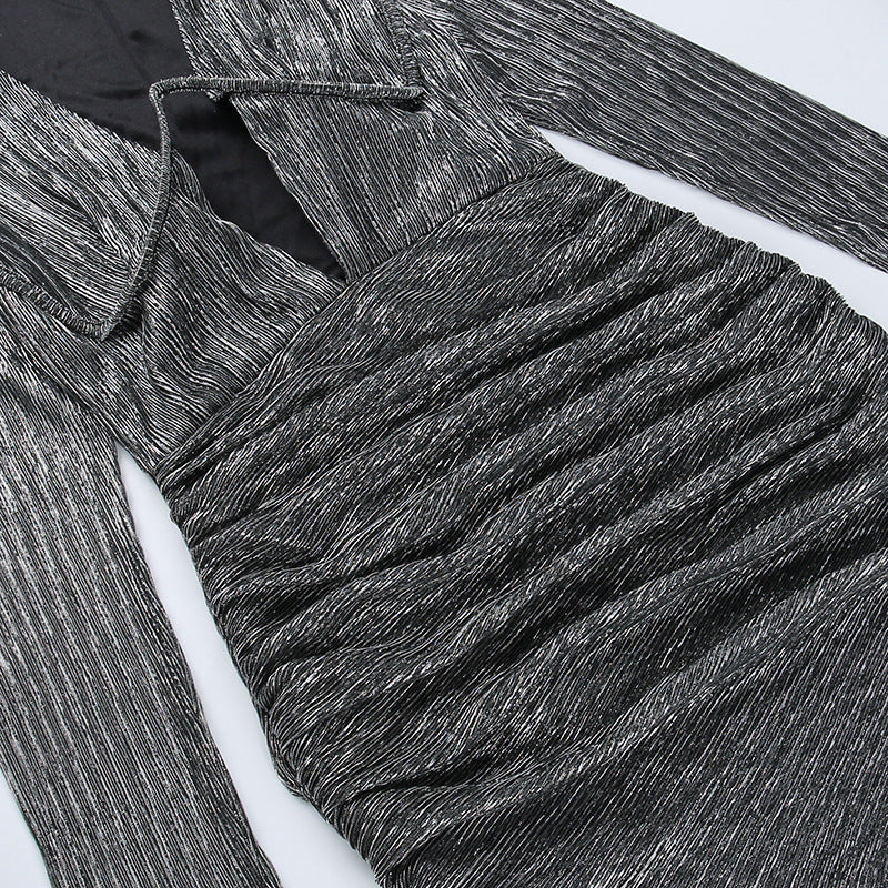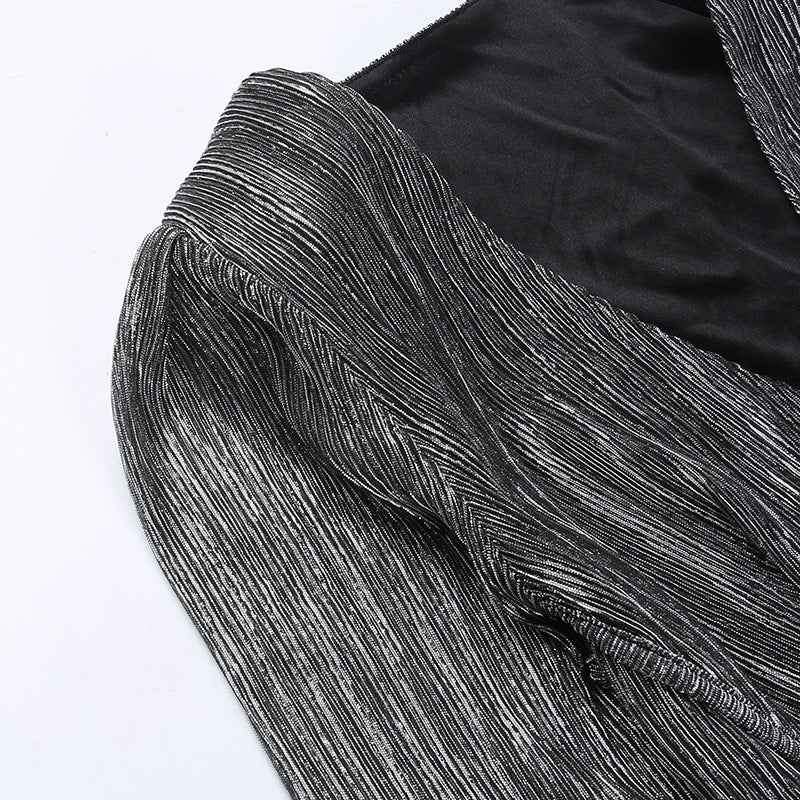fashion solid color v neck long sleeve patchwork polyester knit midi dress straight skirt