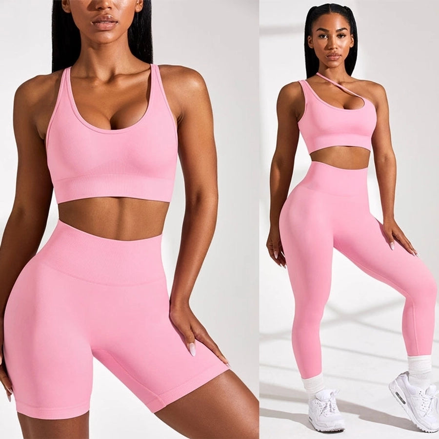 sports solid color chemical fiber blend v neck tracksuit vest leggings