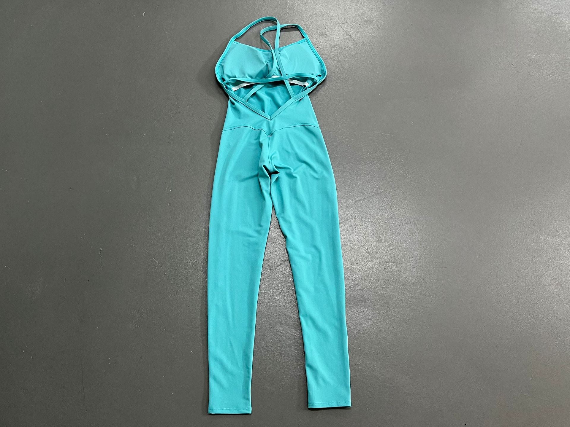 sports solid color cotton blend v neck backless active bottoms halter crisscross tank jumpsuits