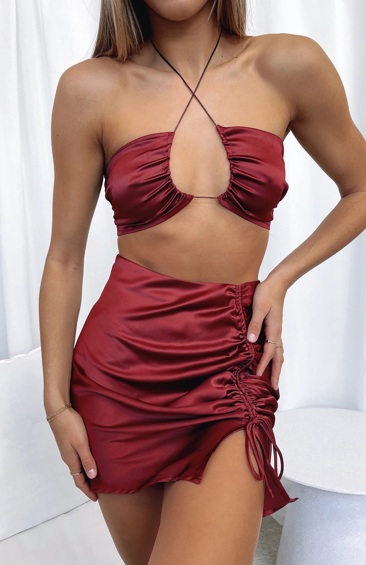 summer sexy solid color polyester above knee skirts