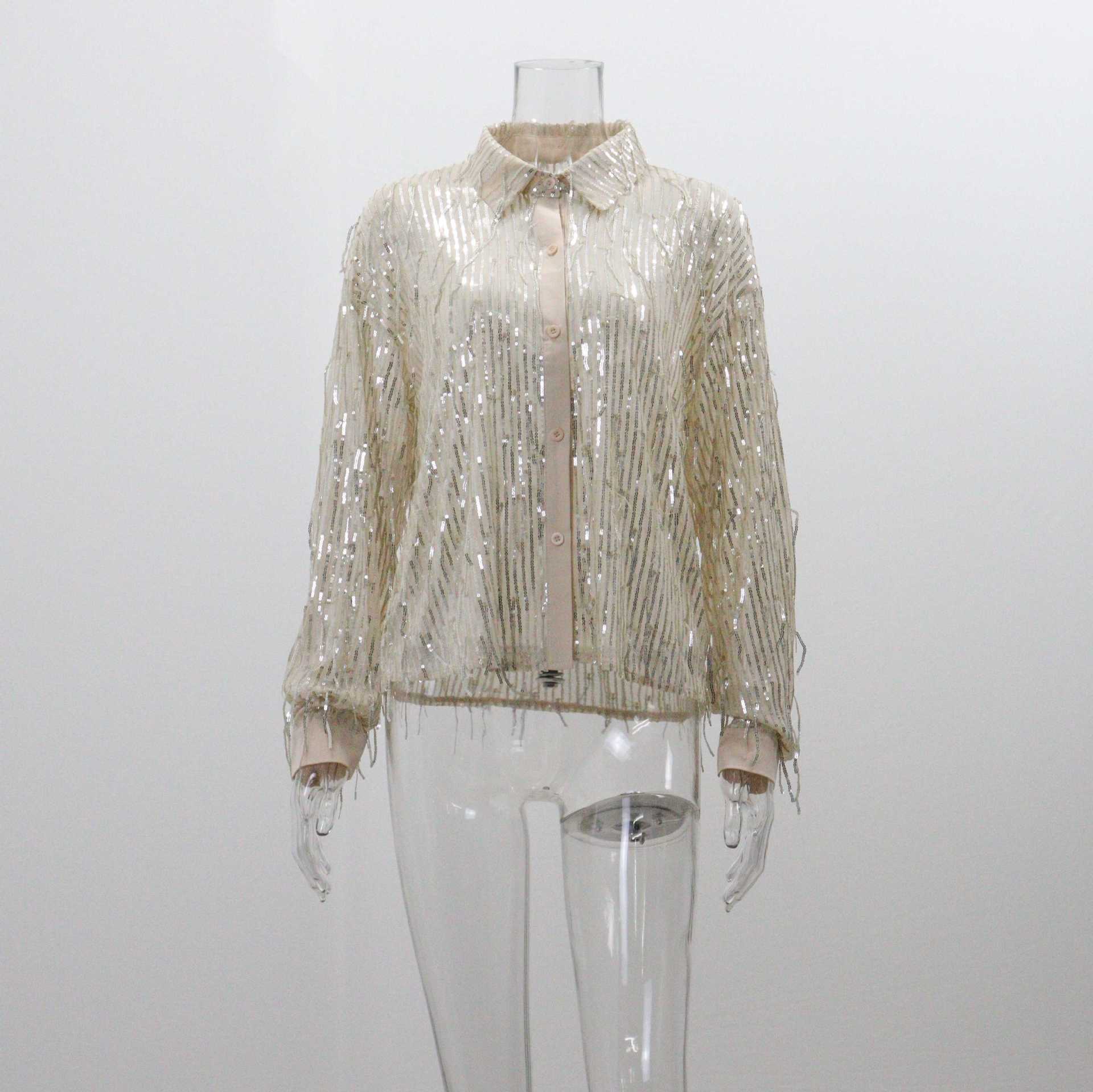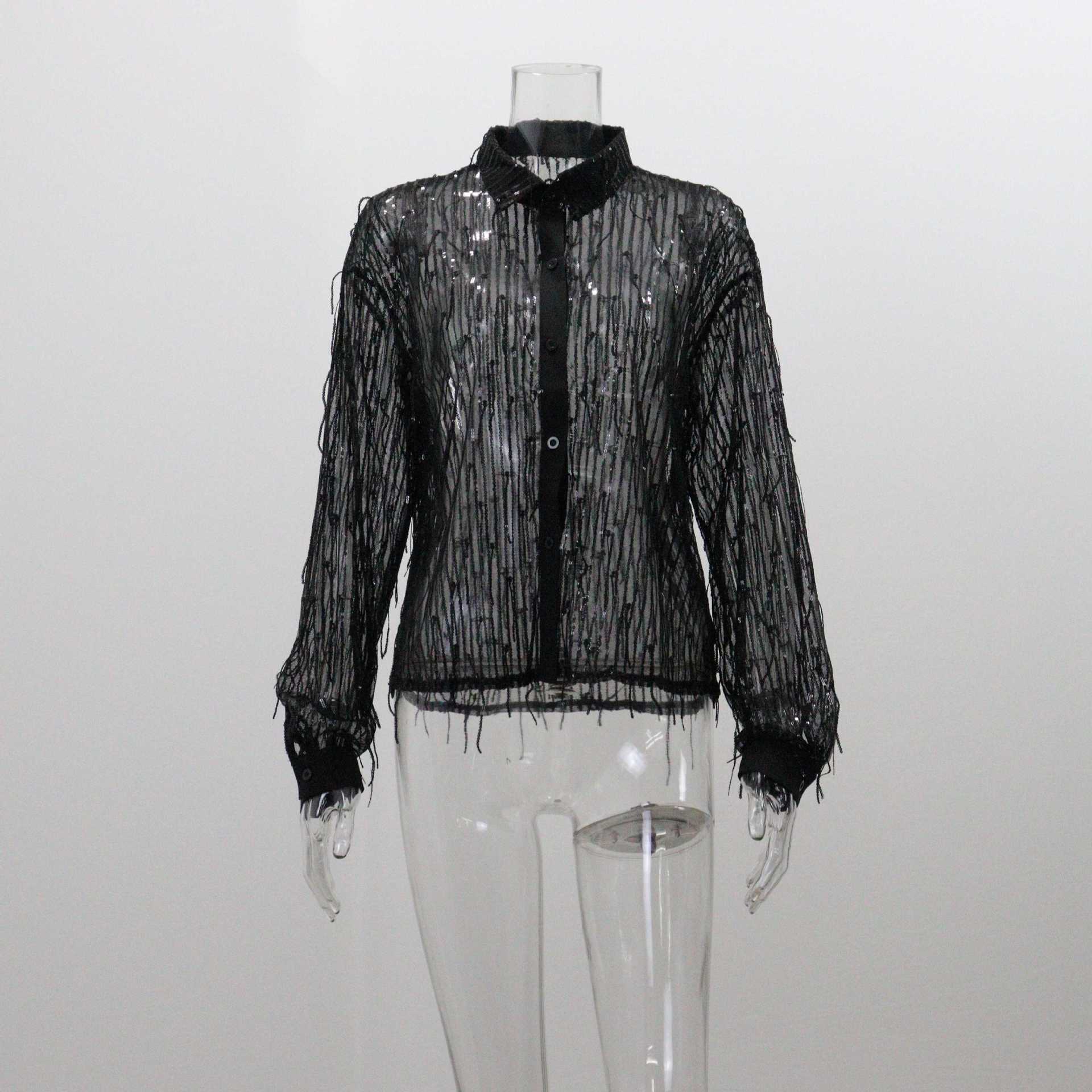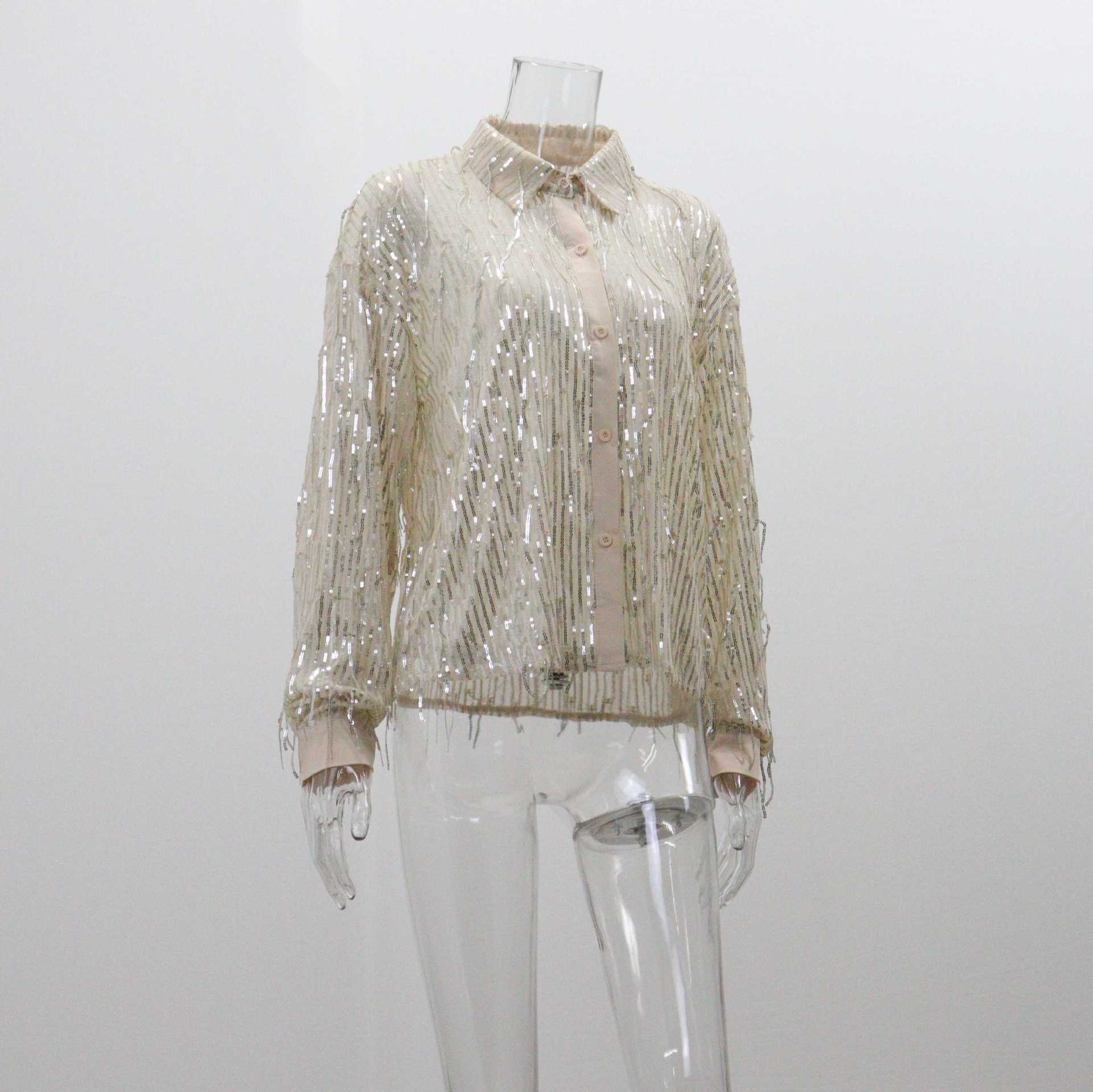 Women's Long Sleeve Blouses Sequins Elegant Stripe