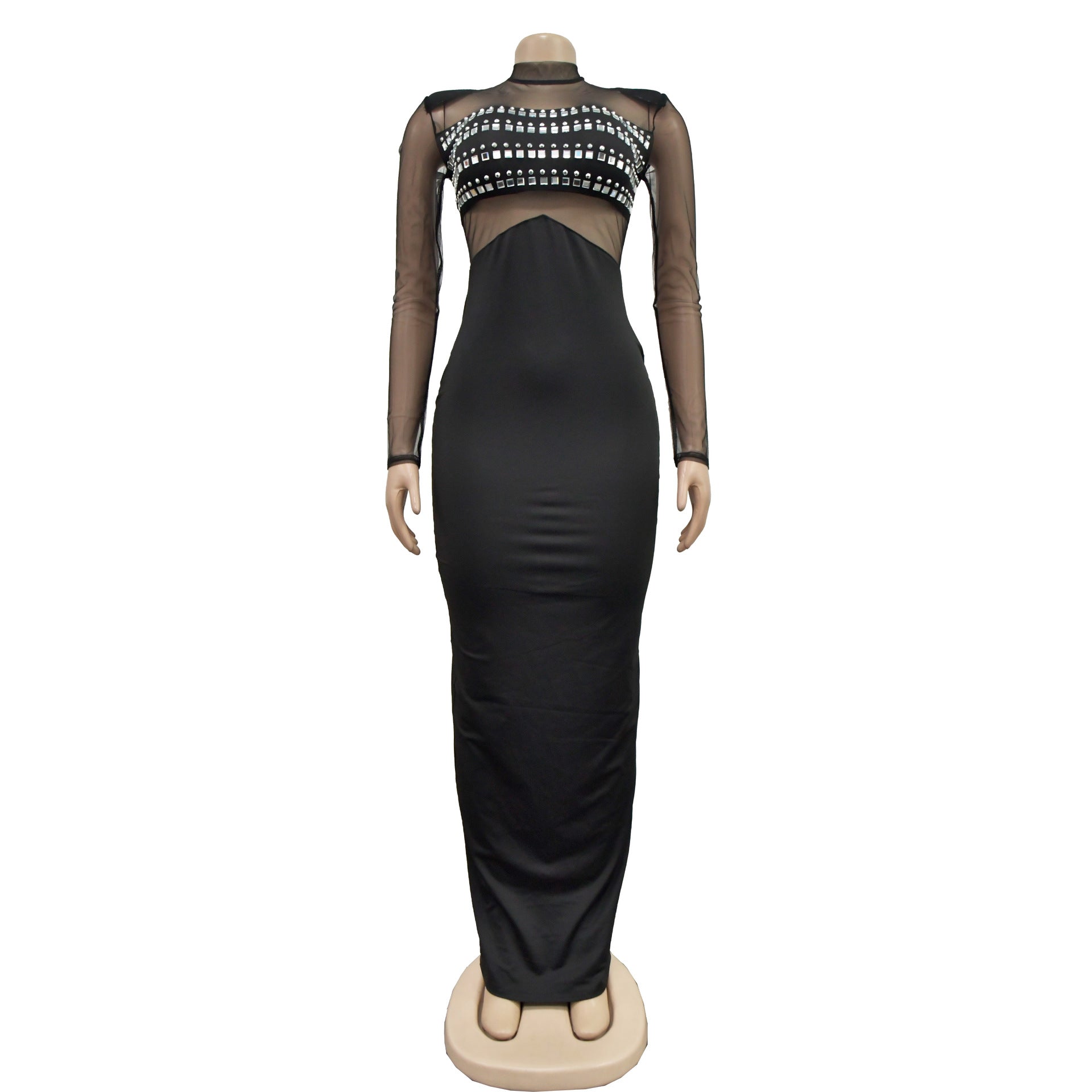 Women's Regular Dress Simple Style Collarless Diamond Long Sleeve Solid Color Maxi Long Dress Holiday Daily
