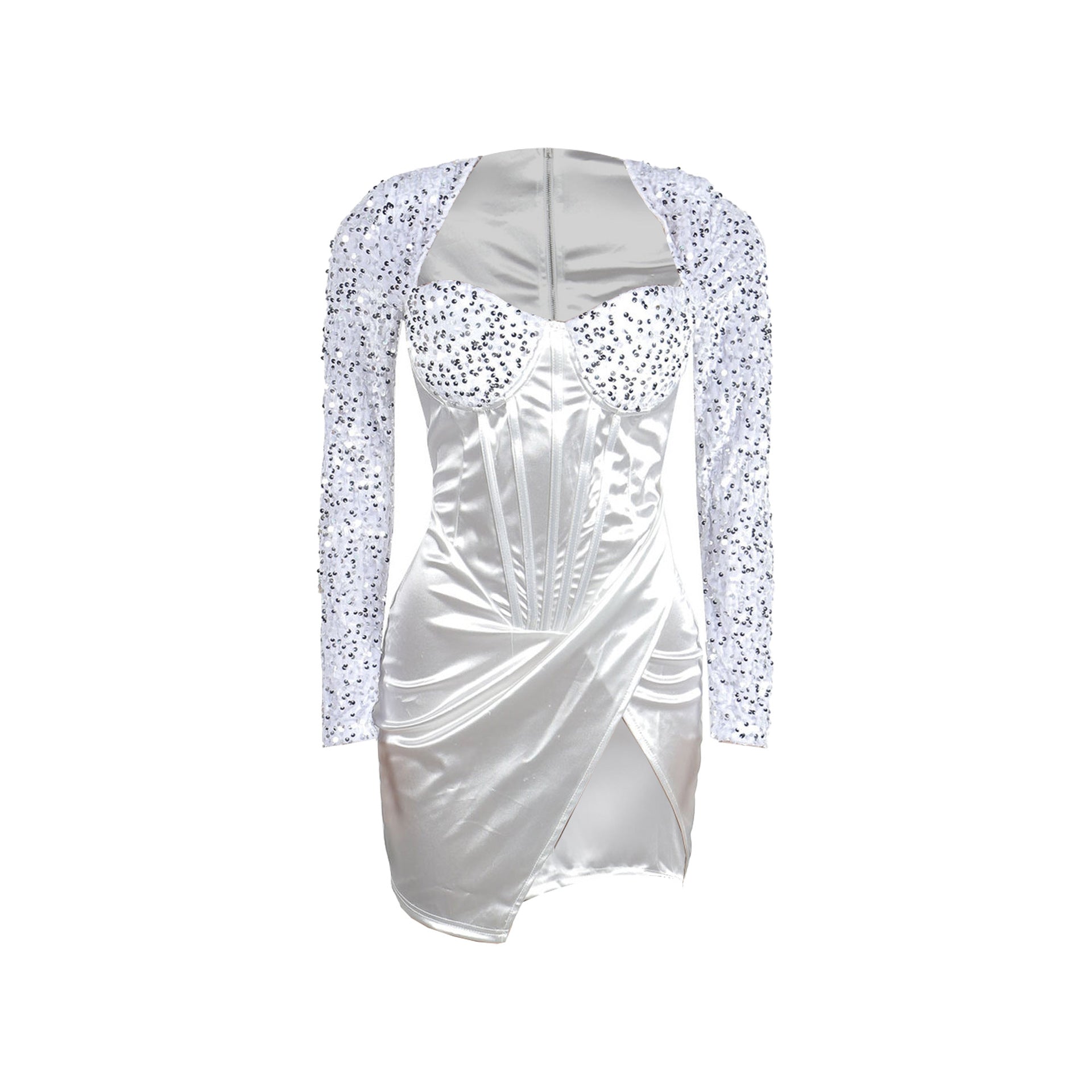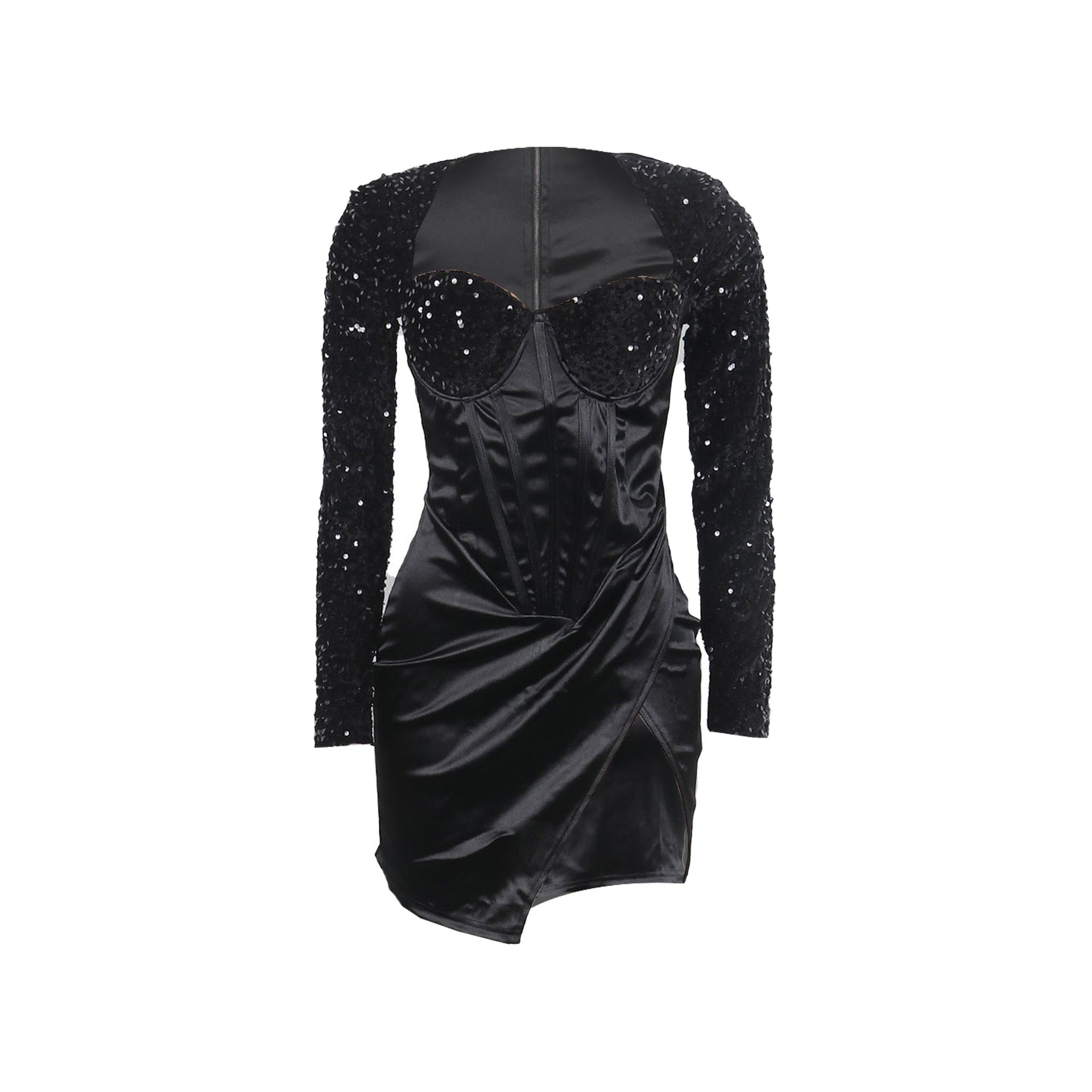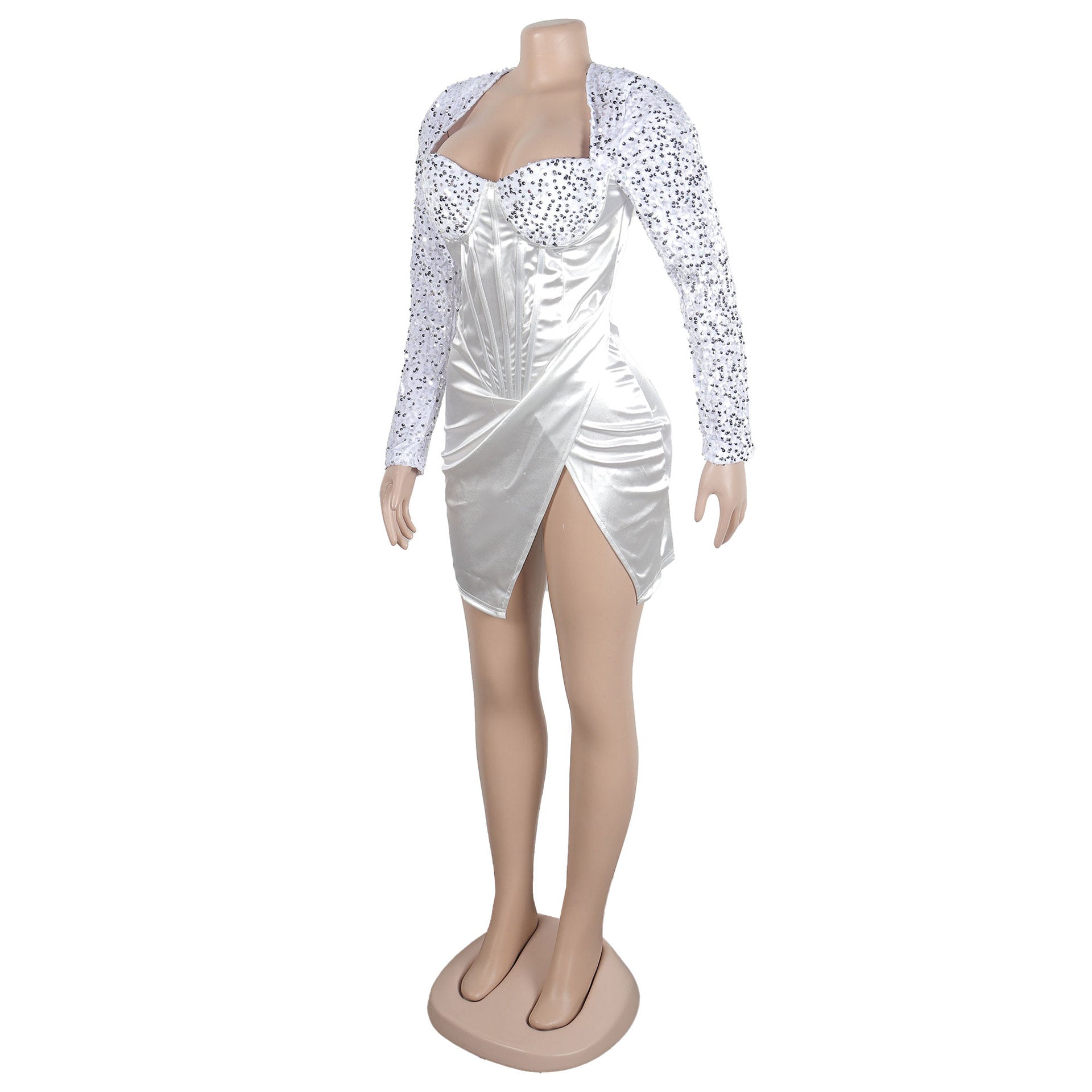women's sheath dress party dress elegant collarless sequins long sleeve solid color above knee banquet party