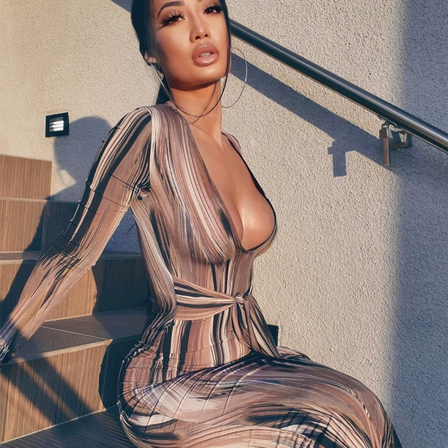 women's sheath dress sexy deep v long sleeve tie dye maxi long dress nightclub party