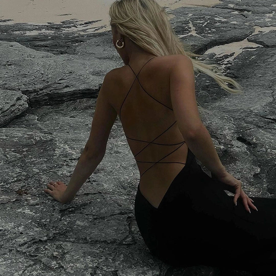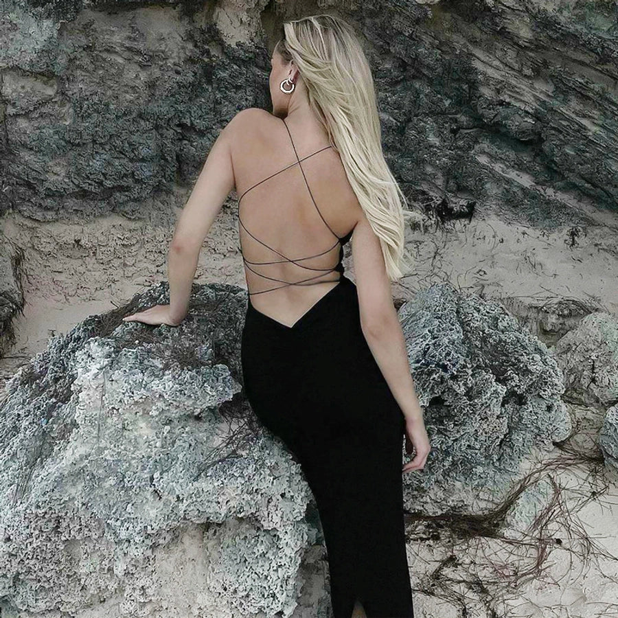Women's Sheath Dress Sexy U Neck Backless Sleeveless Solid Color Maxi Long Dress Holiday Travel