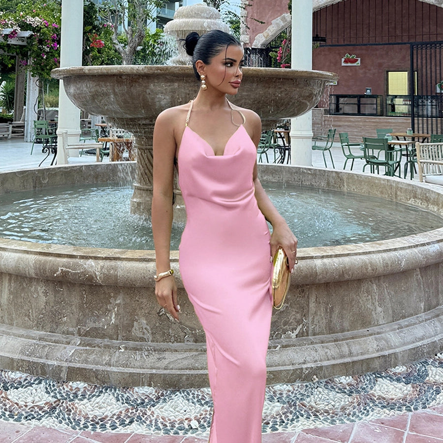 Women's Sheath Dress Streetwear Halter Neck Sleeveless Solid Color Maxi Long Dress Cocktail Party