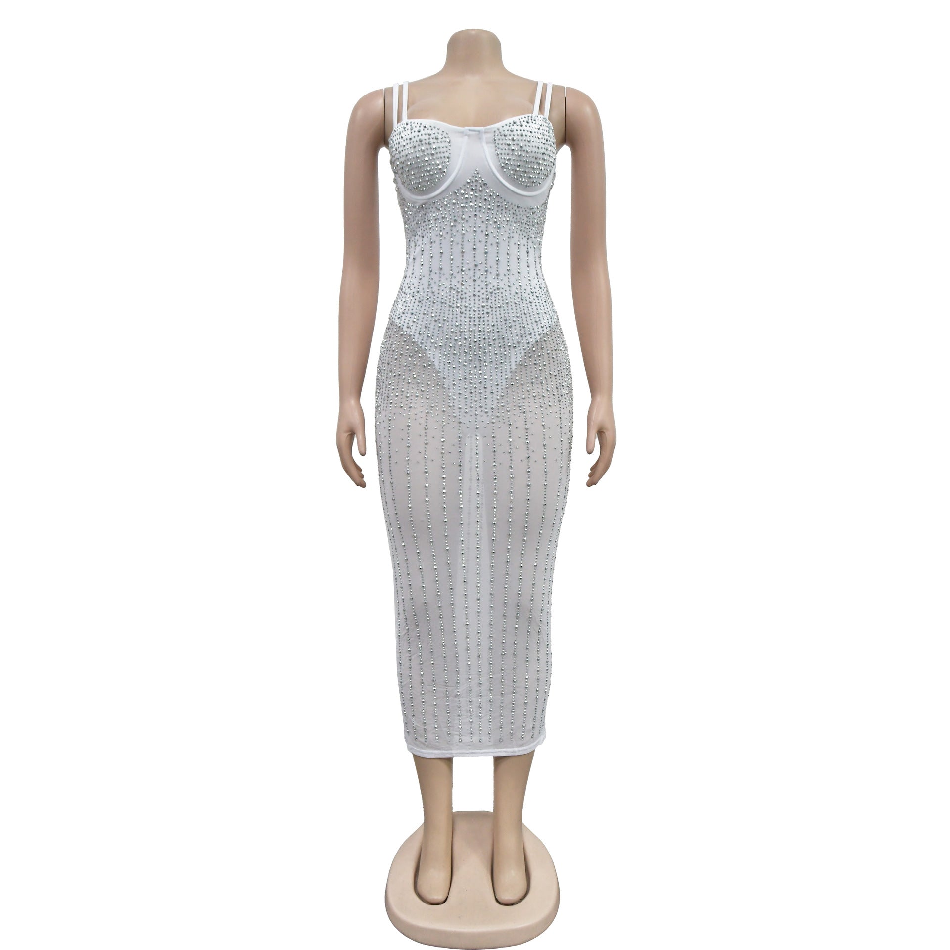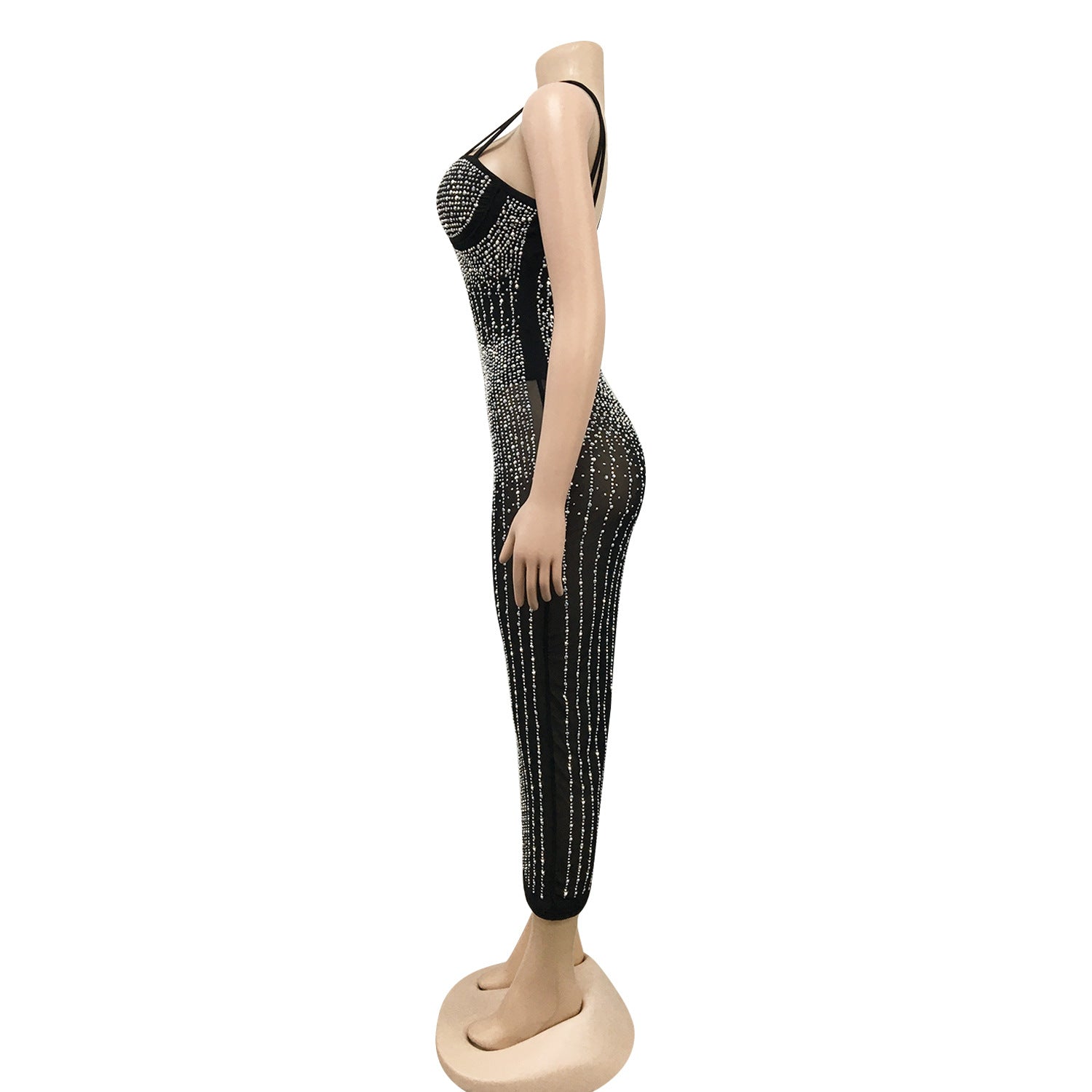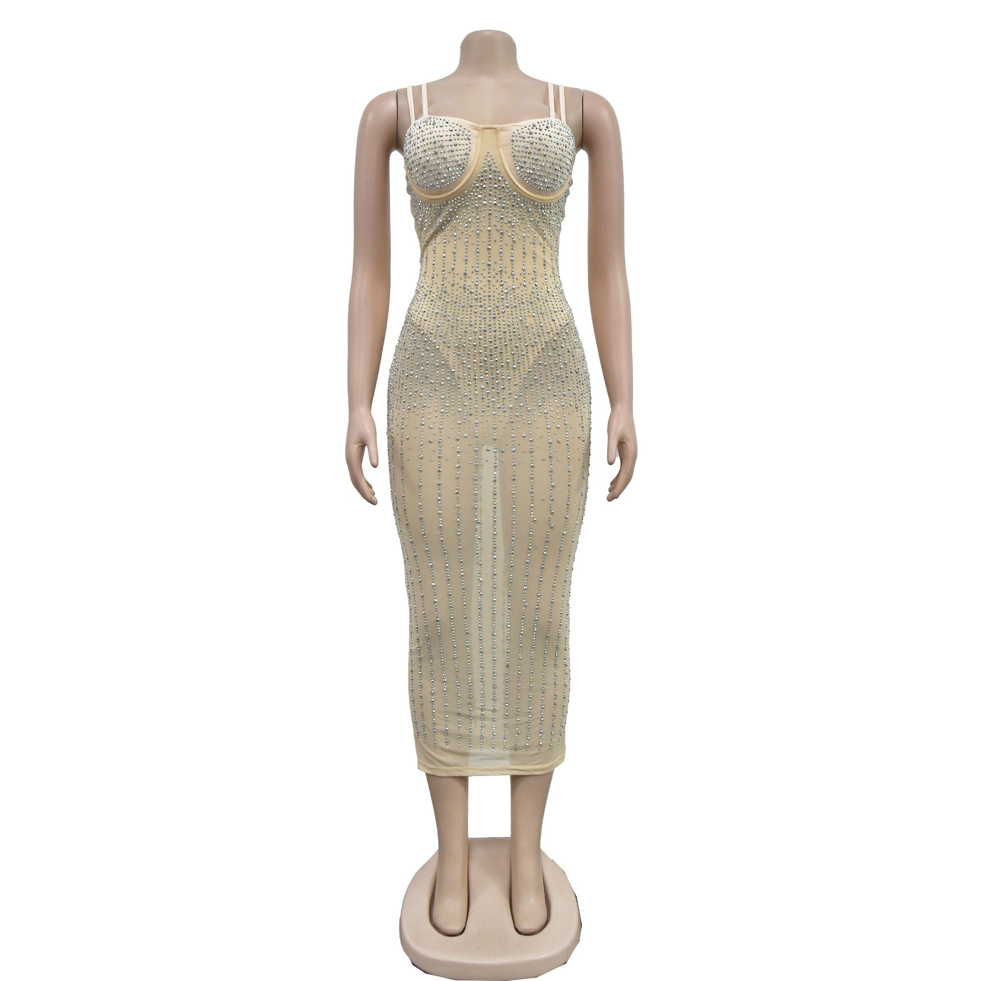 women's strap dress simple style strap diamond sleeveless solid color midi dress party street