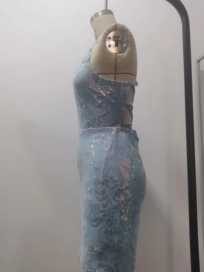women's strap dress simple style strap sequins backless sleeveless printing above knee daily street