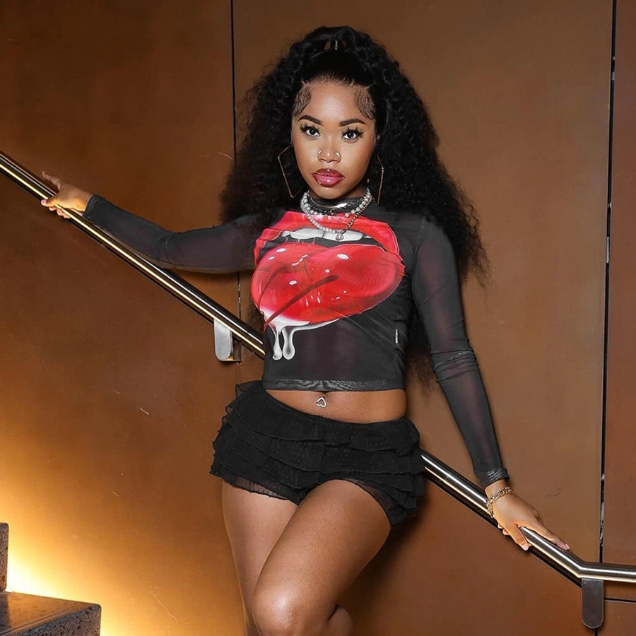 Women's T-shirt Long Sleeve T-Shirts Streetwear Lips Cherry